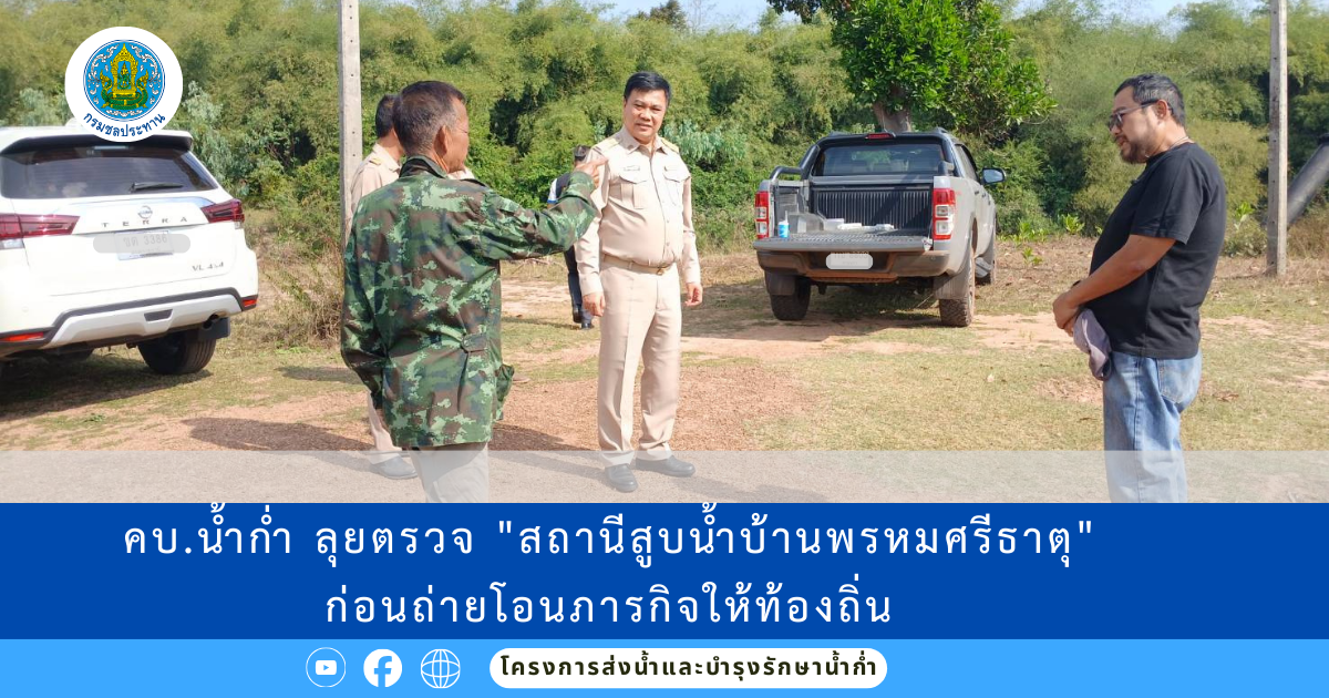 ผู้อำนวยการโครงการส่งน้ำและบำรุงรักษาน้ำก่ำ พร้อมคณะเจ้าหน้าที่ ลงพื้นที่อำเภอโคกศรีสุพรรณ จังหวัดสกลนคร ตรวจสอบความพร้อมของระบบสูบ-ส่งน้ำ ณ สถานีสูบน้ำด้วยไฟฟ้าบ้านพรหมศรีธาตุ เพื่อประเมินและเตรียมการถ่ายโอนภารกิจการบริหารจัดการสถานีให้กับองค์กรปกครองส่วนท้องถิ่น (อปท.) อย่างเป็นระบบเพื่อให้เกษตรกรยังคงได้รับน้ำอย่างต่อเนื่องและมีประสิทธิภาพ